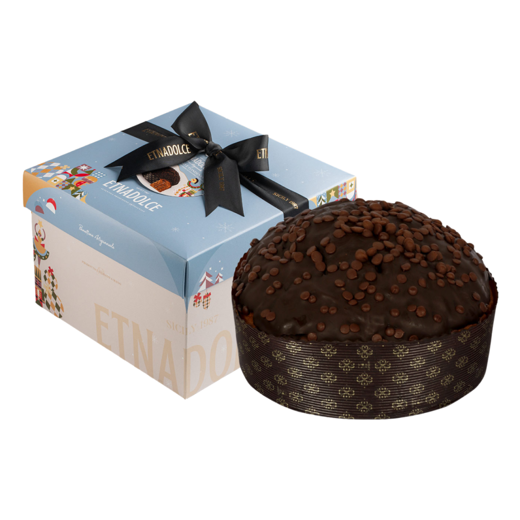 Dolce da forno farcito al cacao farcito con crema al “Cioccolato di Modica I.G.P.” ricoperto di cioccolato bianco e farina di “Cioccolato di Modica I.G.P.”